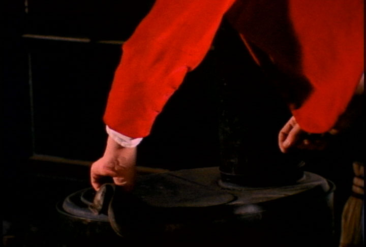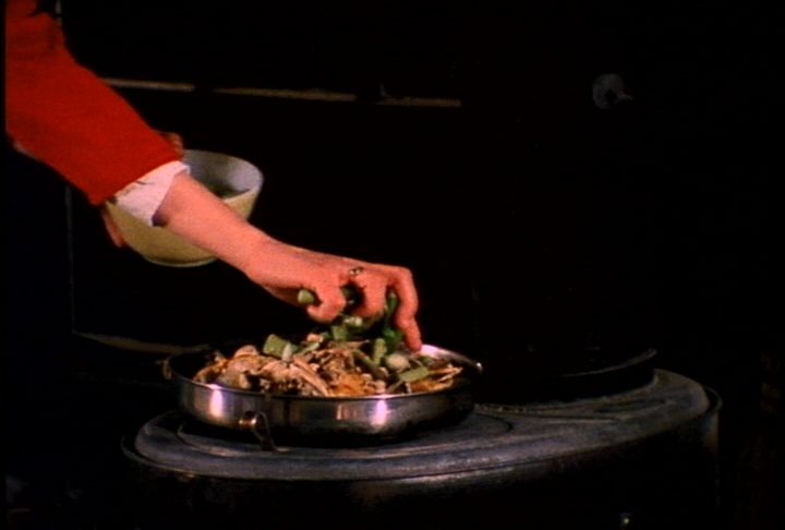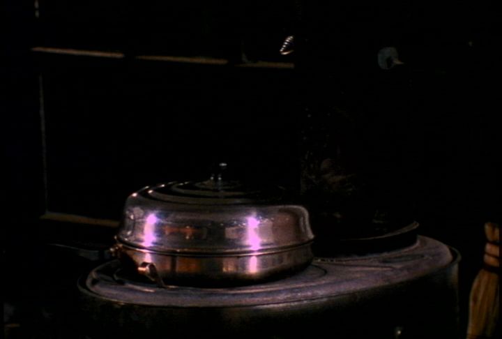 One of the few films I've preconceived before shooting... Re-enactment of a mellow evening with friends, in which a static camera, synchronous sound, a shiny cook pot, and an old wood stove conspire in a game of hide-and-seek with the viewer involving film illusion and point-of-view. A single strand of 16mm and/or a watched pot.